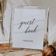 Dieses elegante, dunkelgraue Gästebuchzeichen eignet sich perfekt für eine einfache Hochzeit. Das neutrale Design besticht durch ein minimalistisches Poster, das mit romantischer und skurriler Typografie dekoriert ist.