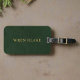 Elegant Dark Green Leather & Gold Script Travel Gepäckanhänger