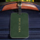 Ein elegantes Gepäckanhänger mit einer dunkelgrünen Lederstruktur mit goldenen Schriftzeichen. Dieses stilvolle und raffinierte Design fügt Ihrem Reisegepäck eine luxuriöse Touch hinzu, die es Ihnen erleichtert, Ihr Gepäck mit einem raffinierten, beruflichen Look zu identifizieren.