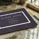 Simple minimal design gold foil stylish bride and groom names personalized vintage antique looking dark purple classy luxury guest book.