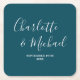 Add a touch of sophistication to your wedding decor with our Elegant Deep Teal Script Minimalist Wedding Square Paper Coasters. These customized coasters feature the names of the bride and groom along with their wedding date, creating a beautiful memento for your special day.