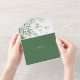 MIT ODER OHNE QR-CODE ZUM AUSSCHLIESSEN. Lassen Sie sich von der zeitlosen Schönheit unserer zarten grünen Hochzeitseinladung verzaubern. Vor einem unberührten, weißen Hintergrund ziehen lockere Stiele von weichen grünen Aquarellenfarnen die links Seite anmutig ab und schaffen so eine exquisite und elegante Darstellung der Gnade der Natur. Die Außenfassade ist mit einer soliden, weichen Farngrün-Lasche und dem Boden geschmückt und fügt sich nahtlos in die unberührte, weiße Mitte ein, die mit einer zarteren Vegetation aufwartet. Diese Einladung vermittelt das Wesen Bio Eleganz und verspricht, Ihre Gäste zu verzaubern und den perfekten Ton für Ihren besonderen Tag zu Set. Lass deine Liebe, die sich inmitten der üppigen Ruhe der schönsten Natur entfaltet. Erstellt von der einfachen Farmhouse Press.