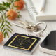 Ce porte - clé moderne présente un design géométrique noir et or avec un diamant et un nom personnalisable en bas.
