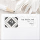 Elegantes Rautenmuster mit Monogramm in der Mitte in serifenem Sans-Schriftart. Rücksendeadresse Informationen werden auf der rechten Seite in Serif-Schriftart gebündelt.