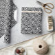 Ein kompliziertes Muster aus Diamanten und quadratischen Kastenformen schafft ein einzigartiges kariertes Design. Dieses Geschenkpapier in Schwarz und Weiß verleiht dem Geschenk eine Touch Eleganz.