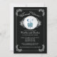 Dîner de répétition moderne avec un cadre floral blanc dainty avec un set de table en dentelle vintage, assiette de dîner avec un couteau, fourchette & cuillère enveloppé d'un joli arc, mis sur un arrière - plan noir classique chic. Retournez notre invitation chic à dîner pour voir un retour assorti pour une touche spéciale supplémentaire. Disponible dans notre boutique dans un large assortiment de couleurs mariages populaires et est parfait pour une répétition de printemps, une fête de répétition d'été, un dîner de répétition d'automne ou un dîner de répétition d'hiver.