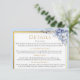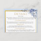 Teilen Sie alle wichtigen Hochzeitsdetails mit dieser eleganten Detail-Karte, die auf die Powder Blue & Gold Floral Wedding Suite abgestimmt ist. Mit zarten Aquarellfloralen in sanften Blautönen und luxuriösen Goldakzenten ist dieser Einsatz ideal für zusätzliche Informationen wie Unterkunft, Transport, Kleidercode.. Vollständig editierbar, um Ihren Bedürfnissen gerecht zu werden. Eine schöne und praktische Ergänzung zu Ihrem Hochzeitsgeschenk Set. Passt perfekt mit der entsprechenden Einladung, RSVP-Karte und Save the Date zusammen.