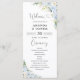 This Elegant Dusty Blue Floral Wedding Programs template beautifully guides your guests through your special day with style and sophistication. Adorned with soft dusty blue florals and delicate greenery, the design creates a romantic and timeless aesthetic that perfectly complements your wedding theme. Thoughtfully structured to present ceremony details, order of events, and special acknowledgments, it ensures clarity while maintaining an elegant look. The fully editable format allows you to customize every section with ease, making it both practical and visually cohesive with the rest of your wedding stationery suite. Ideal for print or digital use, this program adds a polished and meaningful touch to your celebration.