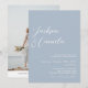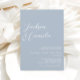 Ideal für Ihre staubblaue Hochzeit. Dieses exquisite Design spiegelt das Wesen einer französischen blauen Hochzeit wider, die nahtlos in jedes staubige blaue Hochzeitthema passt. Ideal für Hochzeiten an der Küste, bietet die Einladung eine hellblaue Hochzeitspalette, die das blaue Hochzeitsthema verstärkt. Ob Sie ein hellblaues Hochzeitsthema planen oder eine Hochzeit in Babyblau planen, diese Einladung bietet die perfekte Touch der Eleganz. Feiern Sie Ihren besonderen Tag mit dieser schönen Einladung, die den zeitlosen Charme einer blauen Hochzeit verkörpert. Machen Sie Ihre Hochzeit "etwas Blau" unvergesslich mit unserer atemberaubenden hellblauen Hochzeitsveranstaltung.