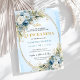 Elegant Dusty Blue Gold Greenery Quince Invitation