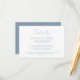 Diese elegante, moderne Hochzeitsdetails-Gehäuse-Karte verfügt über staubblauen Text auf weißem Hintergrund. Der Titel erscheint in einfachem, modernem Schriftsatz, mit anpassbarem Text unten in serifenem Schriftart. Die Rückseite ist solide staubig blau.