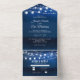 Elegant Dusty Blue Rustic String Lights Wedding All In One Einladung
