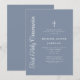 Elegant Dusty Blue Script Boy First Communion Invitation.