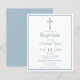 Feiern Sie mit unserer eleganten dustigen blauen Taufeinladung den besonderen Tag Ihres Kleinen. Diese erschwingliche Papiereinladung mit einem schönen staubblauen Rahmen und einem atemberaubenden Goldeffekt-Kruzifix auf weißem Hintergrund, ideal für Taufen oder Taufen von kleinen Jungen oder Mädchen.