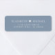 Elegante staubblaue Rücksendeadressen-Aufkleber für Ihre Hochzeitseinladungen, speichern Sie die Daten, Verlobungen Ankündigungen, Duschen von Paaren, Dankeschön-Karten und andere Korrespondenz. Personalisieren Sie Ihr Monogramm mit Ihren Namen, verbunden mit einem Herz in weißer Serifentypografie.