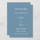 Elegant Dusty Blue Wedding Save the Date, bitte personalisieren Sie die Namen des Paares, das Hochzeitstag und den Hochzeitsort, mit der Online-Personalisierungsvorlage vor der Bestellung. Wenn Sie möchten, können Sie das Save the Date für eine andere Art von Veranstaltung personalisieren, statt einer Hochzeit, indem Sie den Text vor der Bestellung entsprechend ändern.