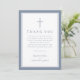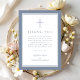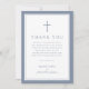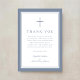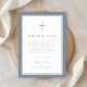 Elegant Dusty Blue Religious Cross Baptism Thank You Card.