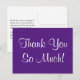 Dieses elegante und elegante Dankeschön-you-Postcard-Design enthält die Meldung "Danke So viel!" auf der Vorderseite, zusammen mit einer anpassbaren Nachricht auf der Rückseite. Es könnte verwendet werden, um jemandem, der etwas Besonderes getan hat, Anerkennung zu zollen.