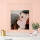 Présentant un magnifique panneau de mariage acrylique transparent qui capte magnifiquement l'essence de la romance moderne. Cette enseigne élégante est ornée d'un arrière - plan acrylique clair et croustillant, apportant une touche chic et contemporaine à toute décoration mariage. Le design présente une photo romantique du couple, ajoutant un élément personnel et chaleureux. La typographie de script blanc et délicate annonce avec élégance "Bienvenue à Notre Mariage", complétée par les noms du couple et la date du mariage dans une police moderne et raffinée ci-dessous. Une icône de coeur subtile en bas à droite ajoute une touche de charme, tandis que le message "Merci de partager cette journée avec nous !" express gratitude aux invités. Ce panneau polyvalent se marie parfaitement avec n'importe quel thème mariage, ce qui en fait un complément parfait à votre journée spéciale.