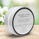 Un élégant étiquette de cosmétique avec un arrière - plan blanc, du texte noir et une bordure noire.
