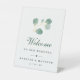 Elegantes Eukalyptus Greenery Wedding Welcome Pedestal Sign. Alle Texte sind so vorbereitet, dass Sie sie einfach und schnell mit Ihren eigenen Details personalisieren können.