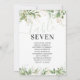 Elégante carte de table de verdure avec un arrière - plan blanc élégant, aquarelle botanique eucalyptus feuillage, accents de parties scintillant or, et un numéro de table mariage moderne modèle avec vos noms d'invités.