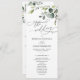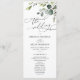 Conçu pour coordonner avec notre collection Boho Greenery mariage, ce programme de cérémonie personnalisable comprend des branches d'eucalyptus aquarelle avec une police serif classe et d'élégants graphiques de texte calligraphie. Éléments correspondants disponibles.