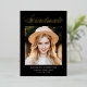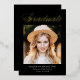 Élégant faire-part de graduation avec "Graduate" affiché en haut dans un script de calligraphie de feuille d'or avec un arrière - plan noir (ou la couleur de votre choix). Le design présente la photo du diplômé avec son nom, son nom d'école et son année de diplôme, comme indiqué ci-dessous. La faire-part de graduation de la photo s'inverse pour afficher du texte facultatif comme les plans futurs, les détails de la fête de remise de diplômes, etc. Le faire-part chic de graduation est parfait pour annoncer la graduation des diplômés du secondaire et du collège.