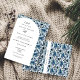 Invitation vos proches pour célébrer votre journée spéciale avec cette élégante invitation de mariage avec une frontière florale bleue sophistiquée. La mise en page classique et épurée combine des polices de caractères serif intemporelles et gracieuses, en mettant en valeur vos noms et les détails de l'événement pour un look raffiné et romantique. Parfait pour les mariages traditionnels ou modernes, cette invitation est entièrement personnalisable avec vos informations de mariage pour créer un faire-part mémorable