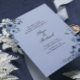 Elégante invitation de mariage avec des fleurs bleues poussiéreuses. Personnalisez avec vos détails mariages.