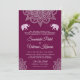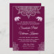 Éblouissez vos invités avec cette faire-part de mariage traditionnelle avec un élégant art du henné et des éléphants magnifiquement décorés contre un arrière - plan violet. Ajoutez simplement les détails de votre événement sur ce modèle facile à utiliser pour en faire une invitation unique. Cette carte est entièrement personnalisable. Tous les textes sont modifiables et la couleur arrière - plan peut être facilement changée selon ce qui vous convient le mieux.