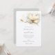 Cette faire-part de mariage décorée avec goût présente une délicate fleur de magnolia dans des teintes douces de crème, d'ivoire et de jaune pâle, rehaussées de subtiles éclats d'or et de beige chaud. La toile de fond est un doux lave d'aquarelle, ajoutant une touche artistique à la composition. L'élégant script et la typographie sont mis contre un arrière - plan blanc immaculé, assurant que les détails de votre journée spéciale se démarquent. Cette invitation dégage une sensation de romantisme intemporel et serait parfaite pour les couples qui souhaitent ajouter une touche d'élégance botanique à leur thème mariage.