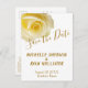 Élégante Carte de Faire-Part de Mariage Rose Jaune. Belle rose jaune. Le texte est dans un script moderne de couleur dorée. Vous pouvez facilement personnaliser tout le texte sur l'avant et l'arrière de la carte - personnalisez-le avec le nom de la mariée, le nom du marié, la date, l'heure, le lieu, et modifiez ou effacez tout texte.