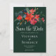 Cette invitation de Faire-Part de Noël pour les fêtes met en vedette une superbe aquarelle de fleurs de poinsettia rouges et de feuilles de pin pour Noël. Un faire-part de mariage d'hiver élégant en vert chasseur foncé. Une célébration festive de l'amour pour les fêtes. Personnalisez le dos de cette carte florale de poinsettia avec les initiales du monogramme du couple.