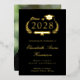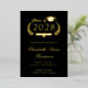 Faire-part de graduation officielle d'un collège noir avec un papier d'aluminium authentique (choisir entre or, argent ou or rose), "Classe de" dans une illustration d'une couronne de laurier incorporant un topper et un diplôme de casquette de grade, et le nom du diplômé dans un script élégant. Ajoutez leur école, leur major, leurs honneurs ou leurs futurs plans dans la typographie serif classique. Leur photo remplit le dos de la carte.