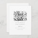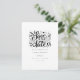 Cette jolie carte postale de faire-part noir et blanc avec un script comportant des feuilles de laurier et des cœurs. Ajoutez les détails de votre annonce spéciale dans un texte classique.