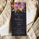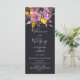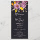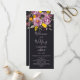 Elegant fall winter purple floral wedding program featuring a modern and elegant calligraphy the wedding of Script in purple, orange and yellow flowers with sage green foliage on dark off black