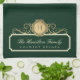 Elegante Familie Zuhause Monogram Gold Green Kitchen Handtuch. Herrliches Design in reichen Gold, Creme, und tiefe Wälder grün / britisch Renngrün Farben. Individuell anpassbare Familie Monogramm Initial, Familienname und Hausname, (oder jeder Text, den Sie wählen). Wir laden Sie ein, unseren Zazzle-Shop, Austen & Grace, zu besuchen, um passende Produkte und mehr zu sehen.