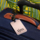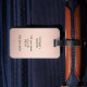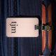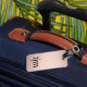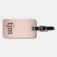Elegant fully customizable luggage tag design with FAUX rose golden background, bold black monogram.