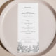 Elégant fleur sauvage en terre cuite noire et blanche 4x9" Mariage floral Table Menu Cartes Dîner Plat Menu en calligraphie script moderne. Vous pouvez trouver une collection d'articles correspondants et la taille 5x7 sur notre magasin VelvetPaperCo.