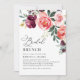 Dieses bezaubernde Bridal Brunch Einladung mit Aquarellblumen in Bordeaux-, Blau- und Korallenpfirsichtönen, mit üppigem Grün und einem weichen rosa Rücken gepaart. Matching-Elemente verfügbar.