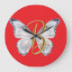 Elegant Floral Butterfly Letter B - Artistic Monog Große Wanduhr