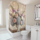 Adorn your bathroom with the romantic elegance of this Blush Roses and Blue Hydrangea Dream shower curtain. This stunning design features a voluminous bouquet set in a classic white urn, showcasing soft pastel flowers including delicate pink and cream roses, voluminous periwinkle blue hydrangeas, and spikes of purple foxglove. The arrangement is set against a dreamy background softly blurred with warm, ethereal bokeh lights, creating a luxurious, sophisticated, and intimate atmosphere. Perfect for wedding, cottage core, or vintage-inspired decor.