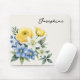 This pretty mousepad is adorned with yellow, blue and white flowers in a watercolor style. Bringing botanical charm to the workspace, it can be personalized with a name in script typography for an individual touch. An ideal decorative and useful gift for birthdays, Mother's Day or any occasion.