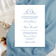 Freuen Sie sich auf die elegante blaue Hochzeitseinladung mit einem feinen, leafarbenen, mit Pärchen-Initialen personalisiert gezeichneten Monogramm. Einfaches, elegantes, stilvolles und formales Design mit handgeschriebenen Kalligrafiedetails und einer Formulierung mit den Eltern-Namen. Auch ohne Eltern-Namen verfügbar. Wählen Sie aus verschiedenen Stilen der Kartenform. Teil unserer Kollektion "Blue Watercolor Botanical Monogram Wedding" mit einer Vielzahl von Produkten zur Koordination. Besuchen Sie die gesamte Sammlung mit diesem Link: https://www.zazzle.com/collections/blue_watercolor_botanical_monogram_wedding-119923294821263262