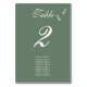 Eine schöne elegante Schrift Typografie Hochzeitsdesign mit einem schlauen olivgrüne Hintergrund Farbe. Ein einzigartiges Design, das einen persönlichen klassischen Kalligraphie Hochzeitsladen Schriftart und einen handgezeichneten grünen Blattzweig verwendet. Ein formelles Skript Kalligrafie-Design mit Tönen von Salbei Oliven grün. Eine elegante Hochzeitskarte mit klassischen Tischnummern. Auch die passenden Hochzeitseinladungen und andere Schreibwaren sind verfügbar. Passen Sie die Anzahl an und erwerben Sie jede Tabellennummer individuell, je nachdem, wie viele Tischnummern Sie benötigen.