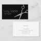 Das moderne Design der Visitenkarten-Visitenkarte zeichnet sich durch Imitate mit silberner Schere, eleganten Kalligrafien-Schriftart und schwarzem Hintergrund aus.