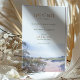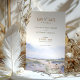 Capturez l'essence de votre prochain mariage sur la plage avec cette superbe carte Save the Date, magnifiquement conçue avec une couleur d'eau sereine au bord de la plage illustration des Outer Banks, Caroline du Nord. L'avant présente une typographie élégante avec des tons doux et terreux de taupe, beige et marron sablonneux, tandis que l'arrière met en valeur une scène tranquille de promenade menant à l'océan. Parfait pour donner le ton d'une fête côtière, cette carte est à la fois intemporelle et moderne, mêlant calligraphie sophistiquée avec des teintes naturelles et apaisantes de bleu ciel, de vert pastel et de sable chaud.