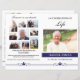 Ein wunderschön elegantes Beerdigungsprogramm mit blauen Blumenmotiven und blauer Namensband. Zu den Funktionen zählen ein großes Foto auf der Vorderseite, eine Collage aus Foto auf der Rückseite mit 9 Fotos und viel Platz für eine Nachhilfe und eine Reihenfolge des Dienstes (oder ein anderer Text Ihrer Wahl auf den Innenseiten). Der gesamte Text ist einfach zu bearbeiten und kann so angepasst werden, dass er ein persönliches und unvergessliches Beerdigungsprogramm für Ihren Liebsten schafft. Dieses Beerdigungsprogramm druckt zweiseitig auf einem Single Papier der Letter Size (8,5 x 11 Zoll). Wenn gefaltet, wird ein Booklet mit 4 x halben Letter-Seiten (8,5 x 5,5 Zoll pro Seite) erstellt.