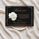 A simple elegant sympathy and memorial thank you card to give during or send after the funeral. Elegant white rose with golden edges on black background. Sophisticated and beautiful keepsake. Add your own personal thank you message.